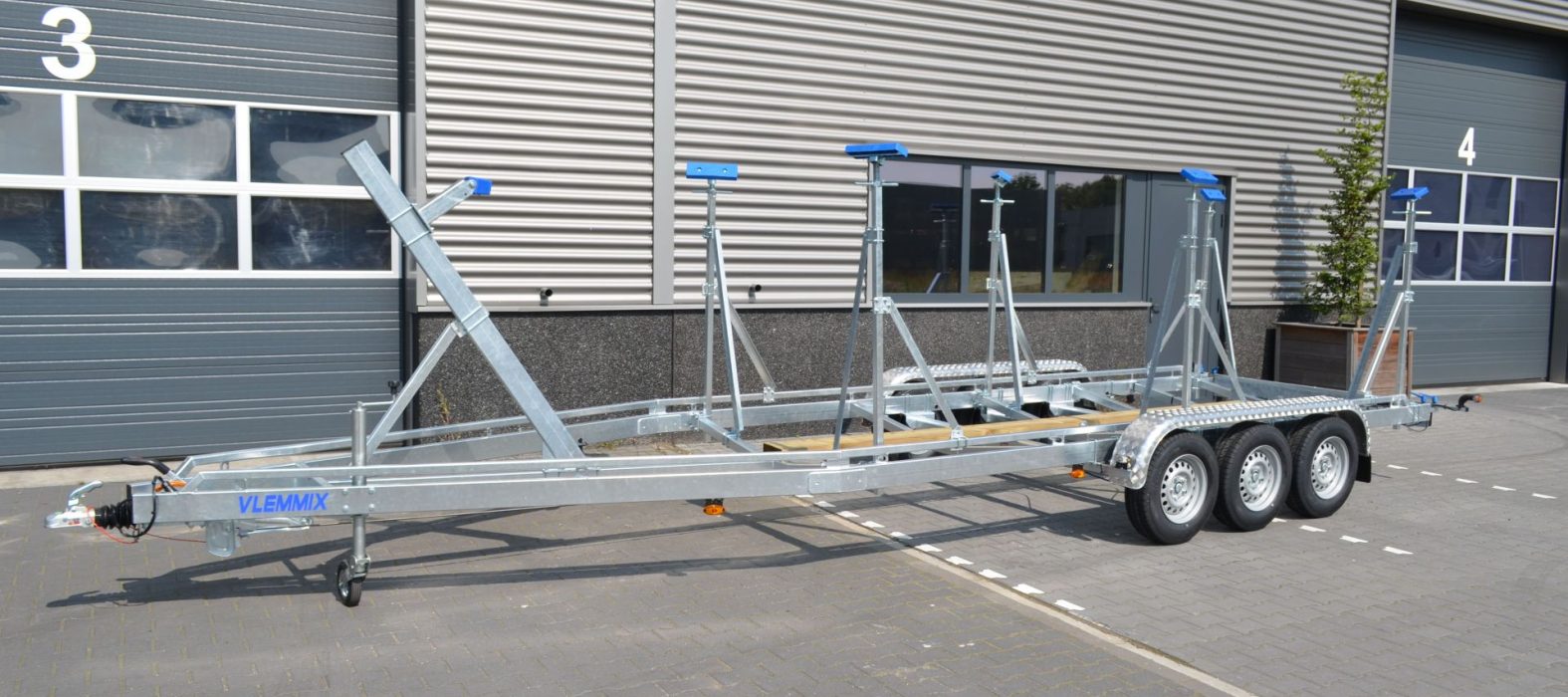 Der Segelbootsanhänger 8,4m 3x1500kg von Vlemmix Trailers ist ein sehr zuverlässiger Segelbootsanhänger. Dieser Anhänger hat eine Größe von 840 x 255 cm. Dieses Modell ist mit drei Achsen von 1500 kg ausgestattet. Der Segelbootstrailer hat ein Gewicht von 720 kg und eine Ladekapazität von 2780 kg, was genügend Spielraum für viele praktische Optionen lässt, die Ihnen beim Transport, aber auch auf der Anhängerrampe helfen werden.