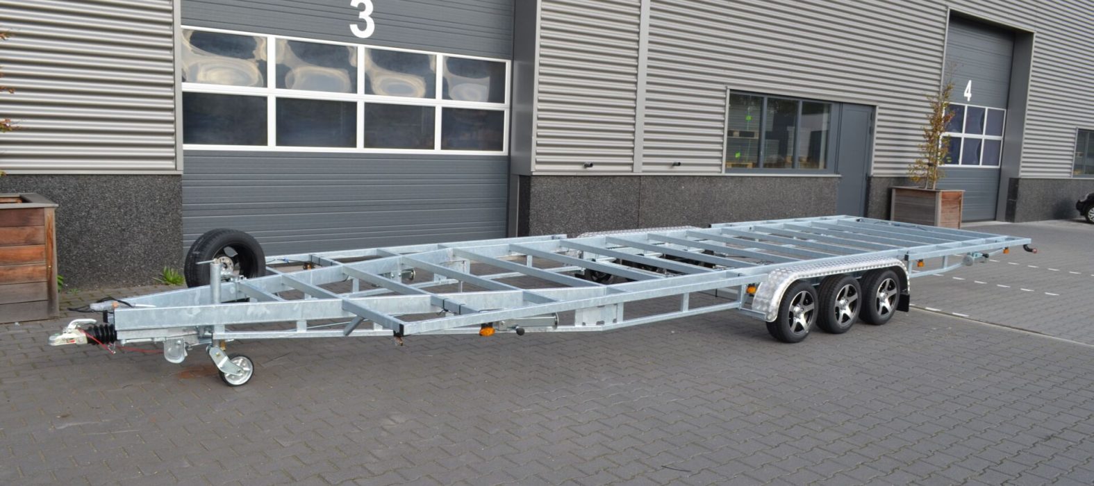 Die Tiny House 840 plateau 3x1350kg von Vlemmix Trailers ist ein hervorragendes Fahrgestell für große Versionen. Der Ladeboden der Tiny House 840 Plattform ist 10 cm höher als bei der Tiny House 840 Standardversion. Dadurch liegt der Ladeboden auf einer Höhe von 62 cm statt 52 cm. Die Räder und Radkästen befinden sich unter dem Ladeboden, sodass auf dem gesamten Ladeboden aufgebaut werden kann.