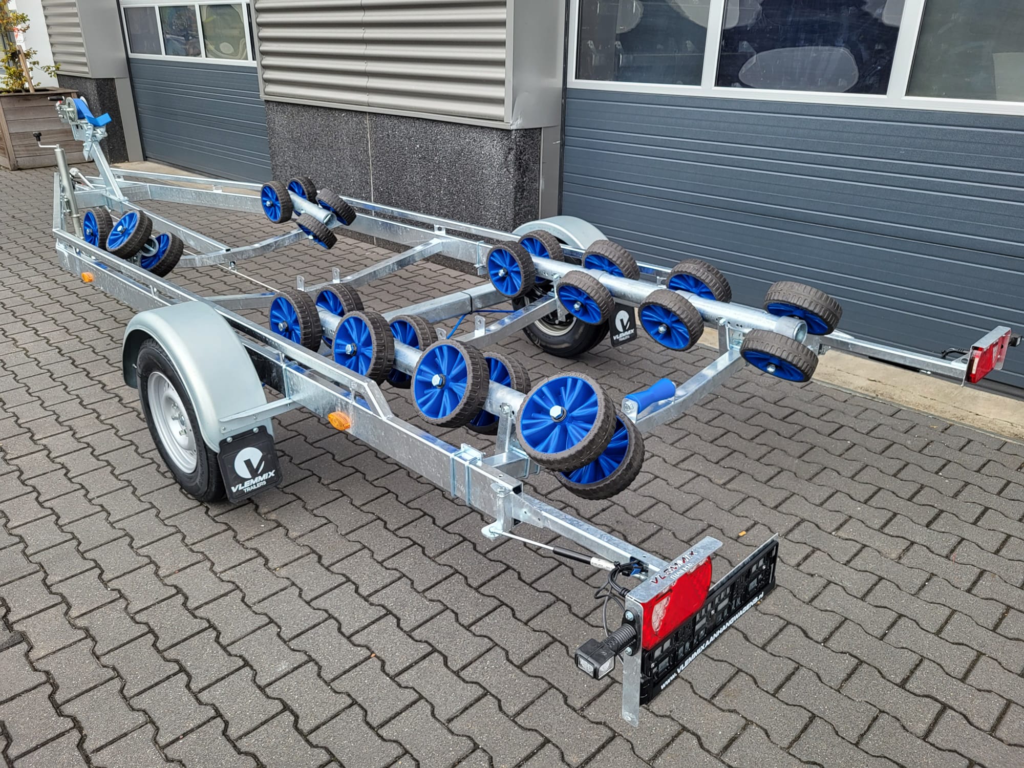 The Flex-roll Trailer 6.3m 2x1350kg from Vlemmix Trailers is a very reliable boat trailer to transport your boat. With a size of 630 x 220 cm, this is the smallest model boat trailer from Vlemmix Trailers. With its own weight of 480 kg you have a payload of no less than 2220 kg and therefore sufficient margin for many practical options that help you during transport, but also on the slipway.